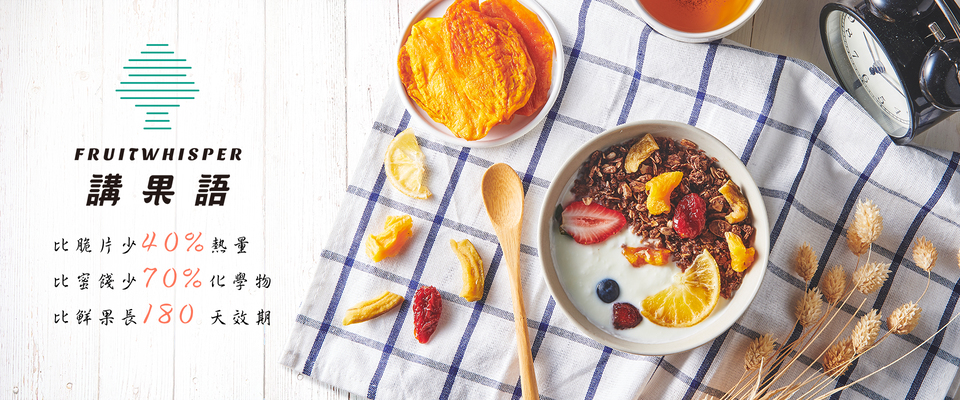 唯有頂級鮮果才能製成果乾,講果語的獨家烘焙技術,使果乾在營養價值保存與果肉多汁口感上達到穠纖合度的完美平衡,讓扎實、濕潤、不腻成為講果語的最大特色。